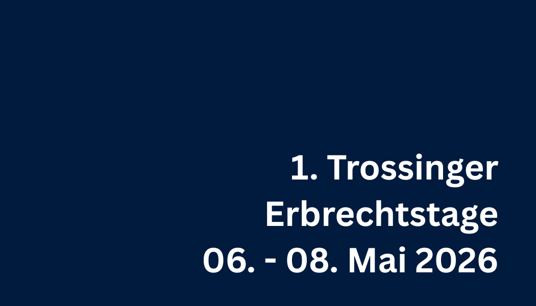 1. Trossinger Erbrechtstage 1. Trossinger Erbrechtstage Schworm2026-04-09T07:27:43+01:00 Die 1. Trossinger Erbrechtstage beschäftigen sich mit den Themen Testament, 1. Trossinger ErbrechtstageSchworm2026-04-09T07:27:43+01:00